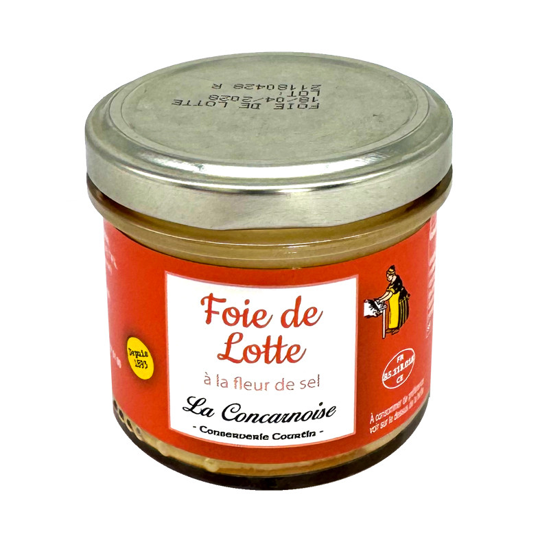 Foie de lotte (Lophius budegassa, pêché en Atlantique Nord-est, zone FAO27 VI) 74%, lait entier, blancs d'oeufs, fleur de sel (France) 0,6%, épices, sucre, poivre blanc. peut contenir : traces de mollusques, crustacés, moutarde, gluten, sulfites, Poissons, lait, œufs